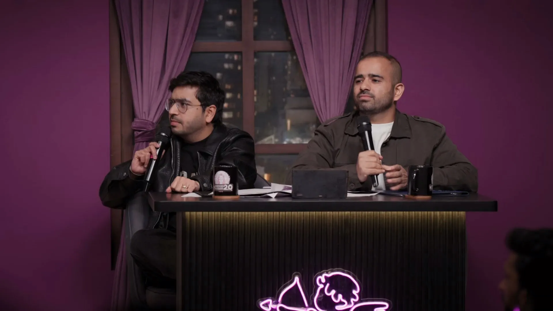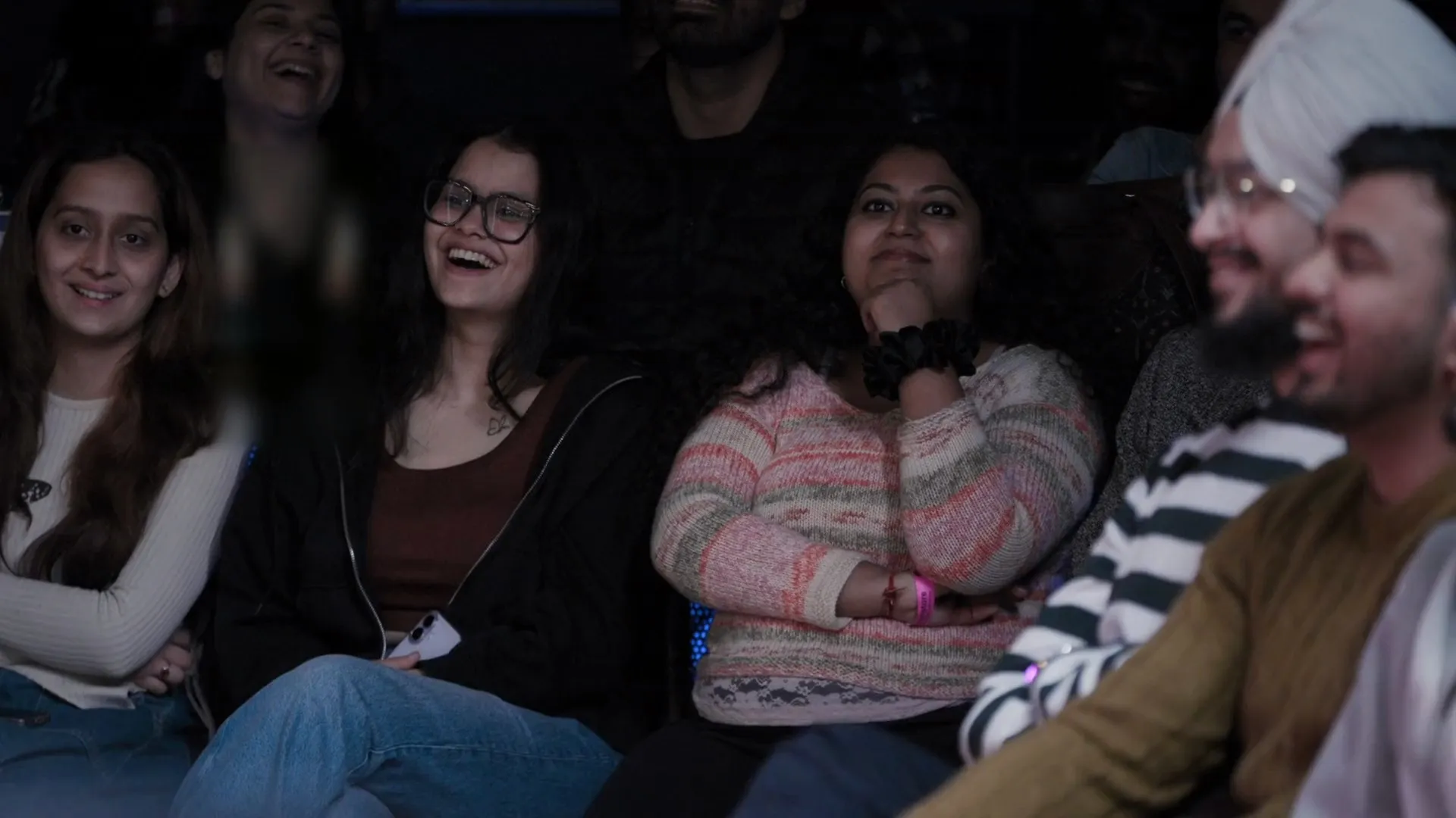 One woman. 4 men. Zero visual bias. A panel of 4-5 comedians orchestrating chaos, wit, and unexpected connections. When you can’t see, you’re forced to actually listen. Personality trumps appearance.