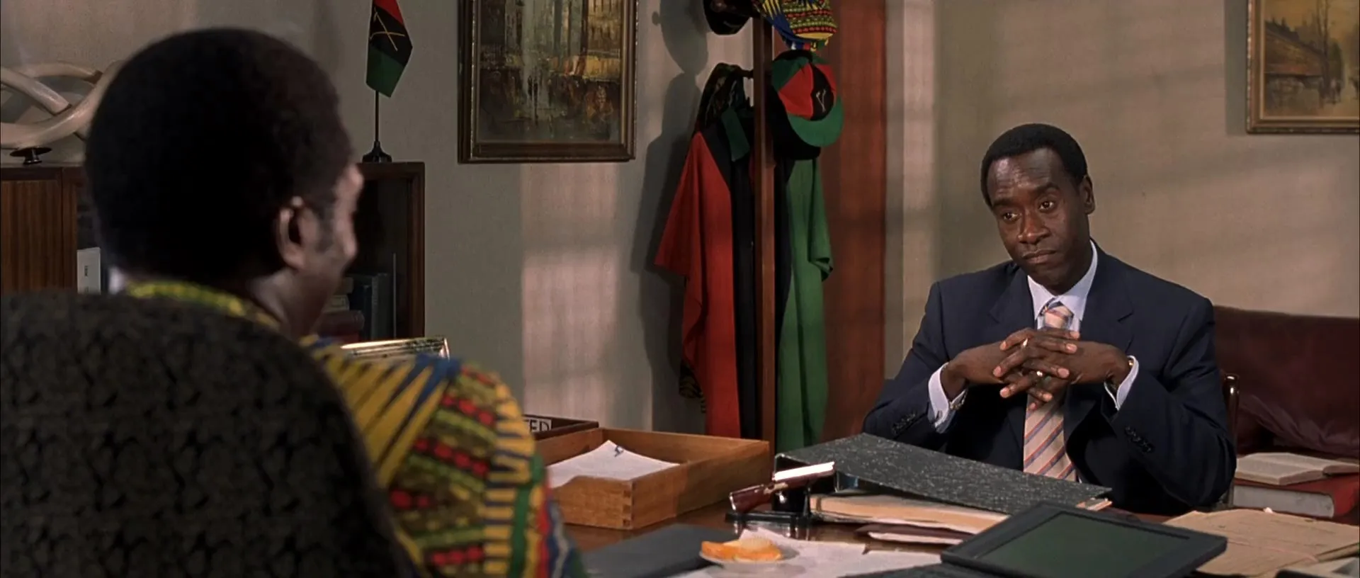 Cast: Don Cheadle as Paul Rusesabagina, Sophie Okonedo as Tatiana Rusesabagina, Nick Nolte as Colonel Oliver, Fana Mokoena as General Bizimungu, Joaquin Phoenix as Jack Daglish, Jean Reno as Sabena Airlines President, Mr. Tillens, Desmond Dube as Dube, Ofentse Modiselle as Roger Rusesabagina, Mathabo Pieterson as Diane Rusesabagina, Hakeem Kae-Kazim as George Rutaganda, Tony Kgoroge as Gregoire, Lebo Mashile as Odette, Antonio David Lyons as Thomas Mirama, Leleti Khumalo as Fedens, Neil McCarthy as Jean Jacques, Mabutho ‘Kid’ Sithole as Head Chef, Jeremiah Ndlovu as Old Guard, Mosa Kaiser as Elys Rusesabagina, David O’Hara as David, Lennox Mathabathe as Peter, Mothusi Magano as Benedict, Simo Mogwaza as Hutu Captain, Cara Seymour as Pat Archer, Roberto Citran as Priest, Mduduzi Mabaso as Hutu Lieutenant, Harriet Lenabe as Alice the Waitress, Xolani Mali as Policeman, Rosie Motene as Receptionist