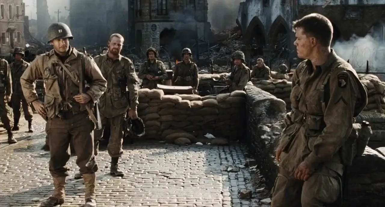 Cast: Tom Hanks as Captain John H. Miller, Tom Sizemore as Technical Sergeant Michael Horvath, Edward Burns as Private Richard Reiben, Matt Damon as Private James Francis Ryan, Barry Pepper as Private Daniel Jackson, Adam Goldberg as Private Stanley Mellish, Vin Diesel as Private Adrian Caparzo, Giovanni Ribisi as T-Medic Irwin Wade, Ted Danson as Captain Fred Hamill, Jeremy Davies as Corporal Timothy Upham, Paul Giamatti as Sergeant William Hill, Dennis Farina as Lieutenant Colonel Walter Anderson, Joerg Stadler as Steamboat Willie, Max Martini as Corporal Henderson, Dylan Bruno as Toynbe, Daniel Cerqueira as Weller, Demetri Goritsas as Parker, Ian Porter as Trask, Gary Sefton as Rice, Julian Spencer as Garrity, Steve Griffin as Wilson, William Marsh as Lyle, Marc Cass as Fallon, Markus Napier as Major Hoess, Neil Finnighan as Ramelle Paratrooper, Peter Miles as Ramelle Paratrooper, Paul Garcia as Field HQ Major, Seamus McQuade as Field HQ Aide, Ronald Longridge as Coxswain, Adam Shaw as Delancey, Rolf Saxon as Lieutenant Briggs, Corey Johnson as Radioman, Loclann Aiken as Soldier on the Beach, John Barnett as Soldier on the Beach, Maclean Burke as Soldier on the Beach, Victor Burke as Soldier on the Beach, Aiden Condron as Soldier on the Beach, Paschal Friel as Soldier on the Beach, Shane Hagan as Soldier on the Beach, Paul Hickey as Soldier on the Beach, Shane Johnson as Soldier on the Beach, Laird Macintosh as Soldier on the Beach, Brian Maynard as Soldier on the Beach, Martin McDougall as Soldier on the Beach, Mark Phillips as Soldier on the Beach, Lee Aaron Rosen as Soldier on the Beach, Andrew Scott as Soldier on the Beach, Matthew Sharp as Soldier on the Beach, Vincent Walsh as Soldier on the Beach, Grahame Wood as Soldier on the Beach, John Sharian as Corporal, Glenn Wrage as Doyle, Crofton Hardester as Senior Medical Officer, Martin Hub as Czech Wehrmacht Soldier, Raffaello Degruttola as Goldman, Nigel Whitmey as Private Boyd, Sam Ellis as Private Hastings, Erich Redman as German #1, Tilo Keiner as German #2, Stephan Grothgar as German #3 / Voice on Bullhorn, Stephane Cornicard as Jean, Michelle Evans as Jean’s Wife, Martin Beaton as Jean’s Son, Anna Maguire as Jean’s Daughter, Nathan Fillion as Minnesota Ryan, Leland Orser as Lieutenant DeWindt, Michael Mantas as Paratrooper Lieutenant, David Vegh as Paratrooper Oliver, Ryan Hurst as Paratrooper Mandelsohn, Nick Brooks as Paratrooper Joe, Sam Scudder as Paratrooper #1, John Walters as Old French Man, Dorothy Grumbar as Old French Woman, James Innes-Smith as MP Lieutenant, Harve Presnell as General Marshall, Dale Dye as War Department Colonel, Bryan Cranston as War Department Colonel, David Wohl as War Department Captain, Eric Loren as War Department Lieutenant, Valerie Colgan as War Department Clerk, Amanda Boxer as Mrs. Margaret Ryan, Harrison Young as Ryan as Old Man, Kathleen Byron as Old Mrs. Ryan, Rob Freeman as Ryan’s Son, Thomas Gizbert as Ryan’s Grandson, Nina Muschallik as Ryan’s Granddaughter (uncredited), Taylor Murphy as Sergeant Blaine (uncredited), Mac Steinmeier as Waffen SS Soldier (uncredited), Derek Lea as Bangalore Assistant (uncredited), Leo Stransky as German Sniper (uncredited), Vincent Ventresca as Soldier on Beach (uncredited)